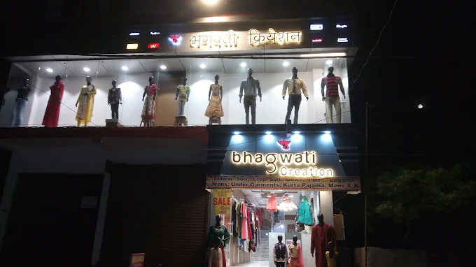 "BHAGWATI CREATION IS COMPLETE FULL FAMILY WEAR READYMADE SHOP WITH A GOOD COLLECTION AND QUALITY .ONE WHO WILL ENTER WILL BE DEFINITELY TAKING SOMETHING."